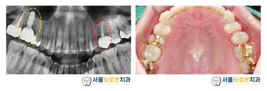 오른쪽 큰 어금니는 현재 치아 뿌리 역할을 하는