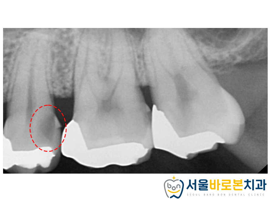 크라운 하방으로 2차 충치가 관찰되었는데요.