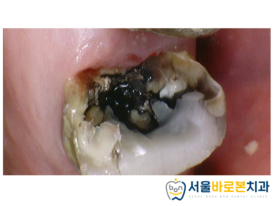 크라운을 제거해 보니 2차 충치로 인해