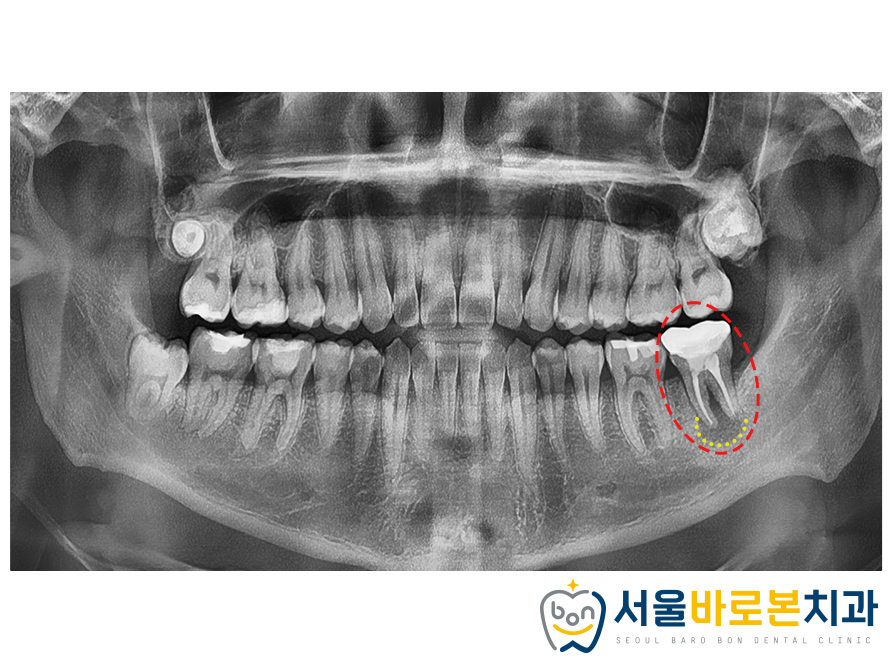 잇몸뼈가 녹아 뿌리 끝 주변으로