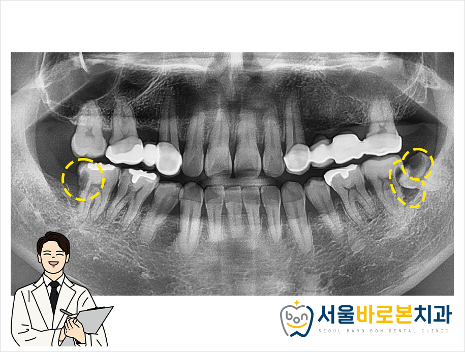 엑스레이 사진에 표시한 부분들이 충치인데,