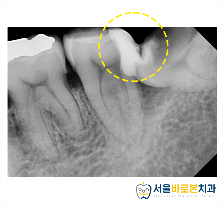 엑스레이 사진은 치아가 썩은 충치 부분을
