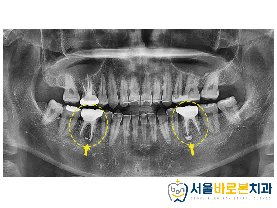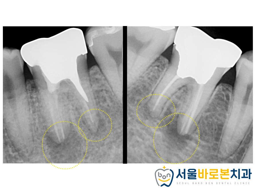뿌리 끝 염증이 심해 어려운 케이스였지만,