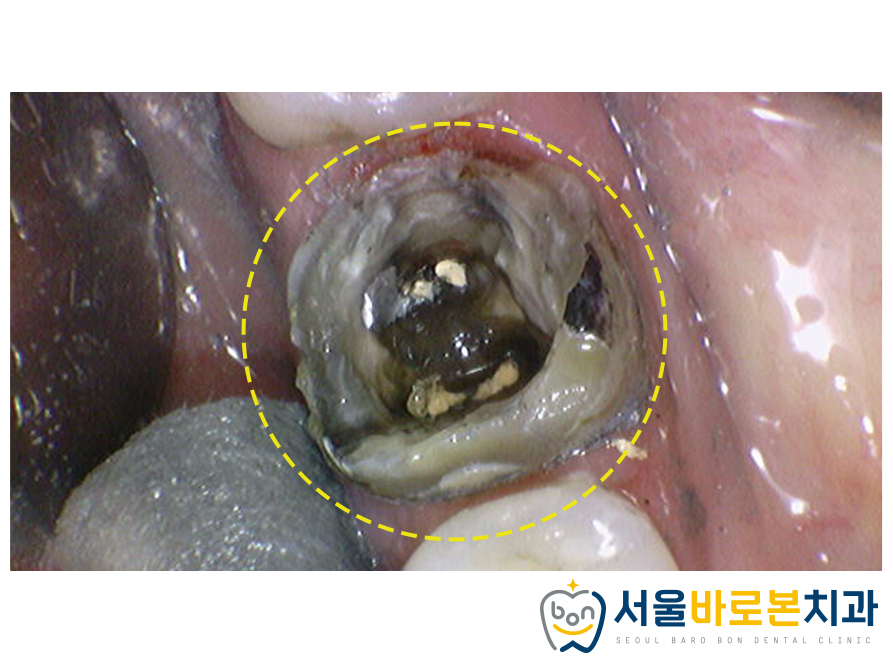 뿌리 끝으로 염증이 심한 상태였답니다.